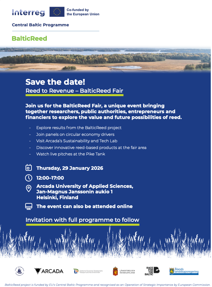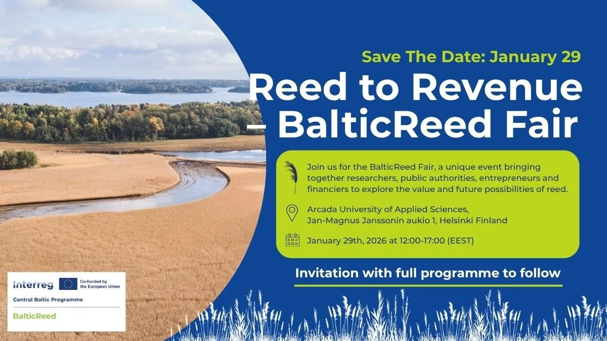We are delighted to invite you to the Reed to Revenue – BalticReed Fair on Thursday, 29 January 2026, at Arcada University of Applied Sciences in Helsinki, Finland. The event will take place from 12:00 PM to 5:00 PM.